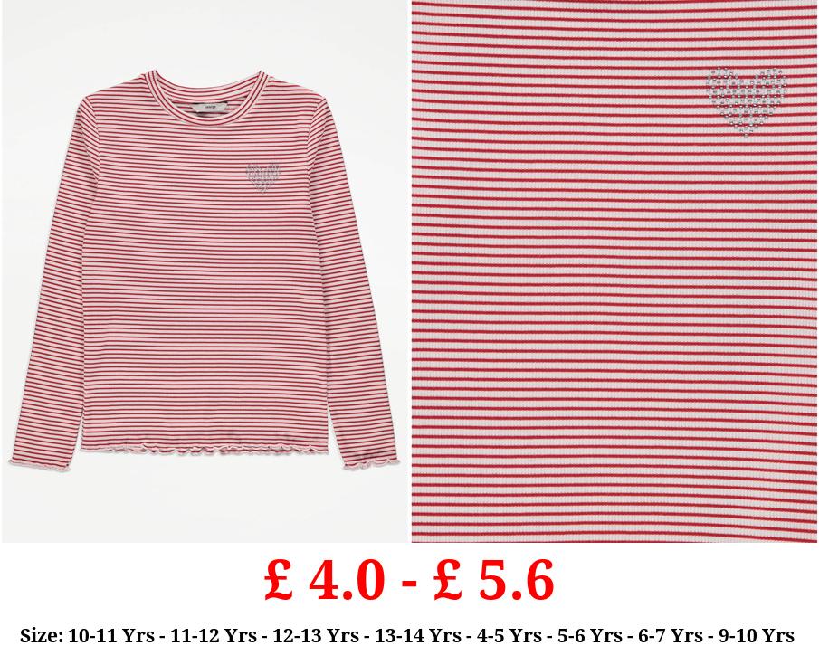 £ 4.0 - £ 5.6 Red Stripe Diamante Heart Long Sleeve Top