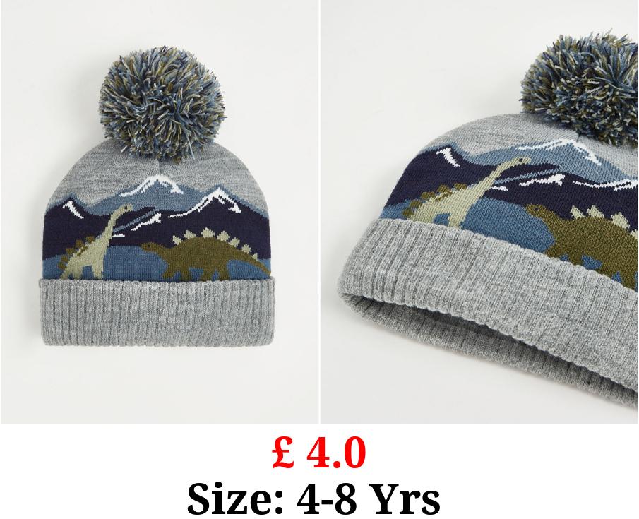 £ 4.0 Grey Dinosaur Knitted Beanie Hat