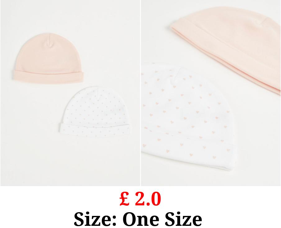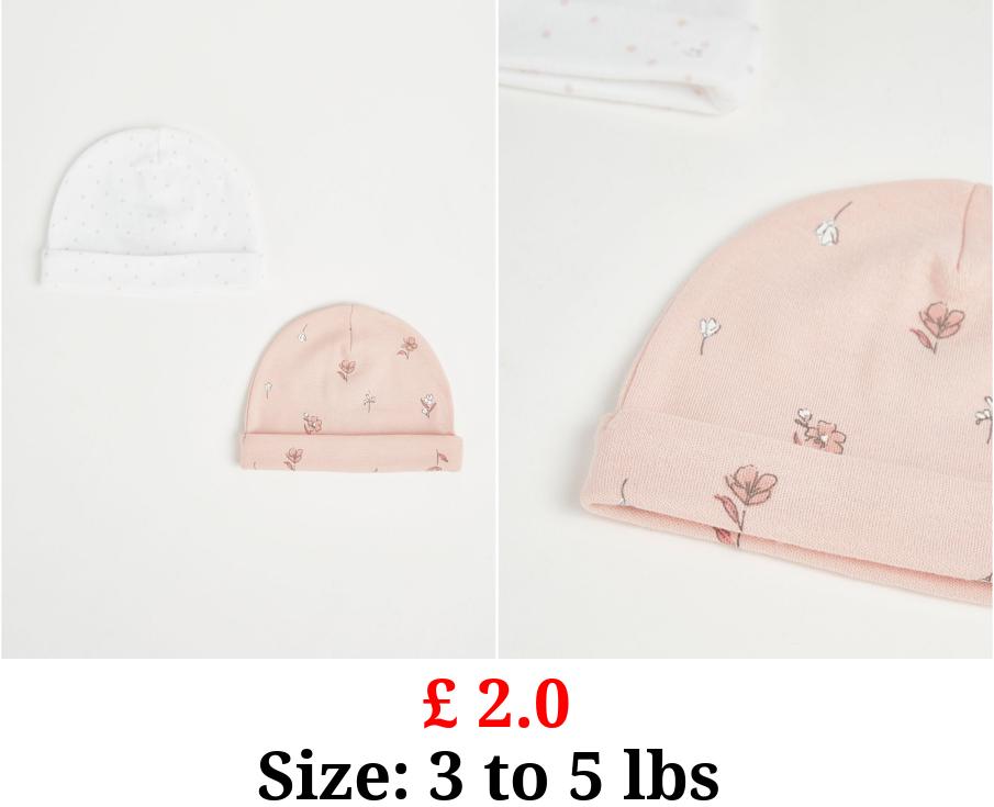 £ 2.0 Pink Patterned Baby Hats 2 Pack