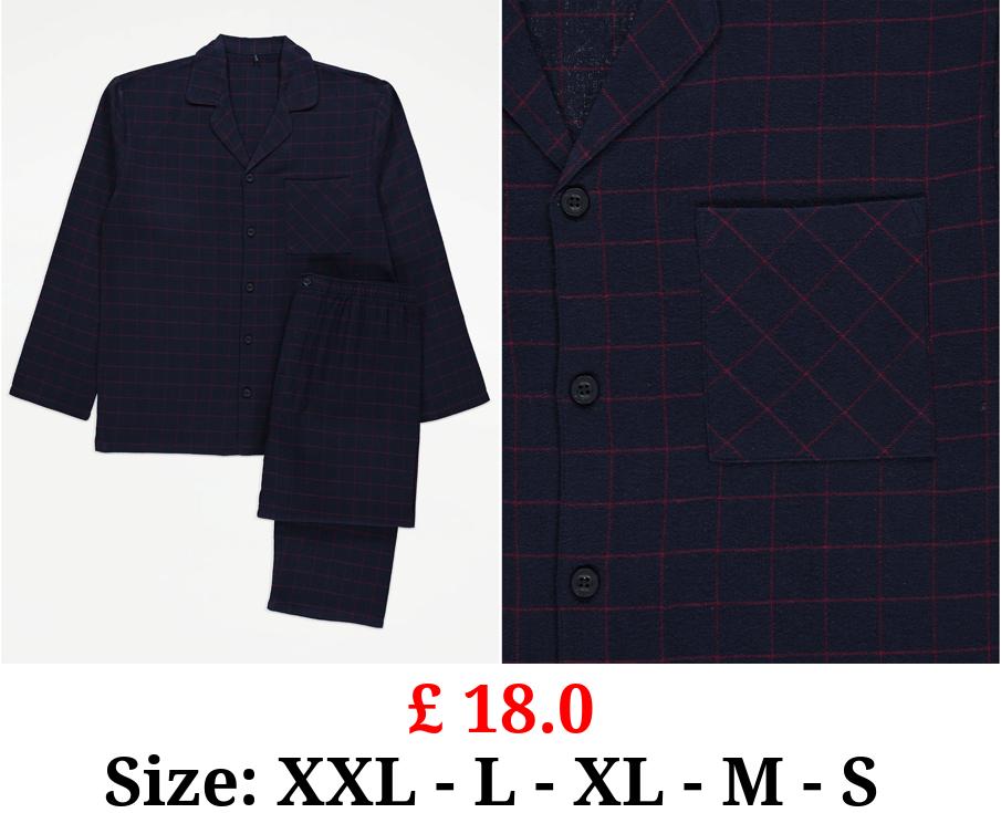 £ 18.0 Navy Check Shirt Long Sleeve Brushed Pyjamas