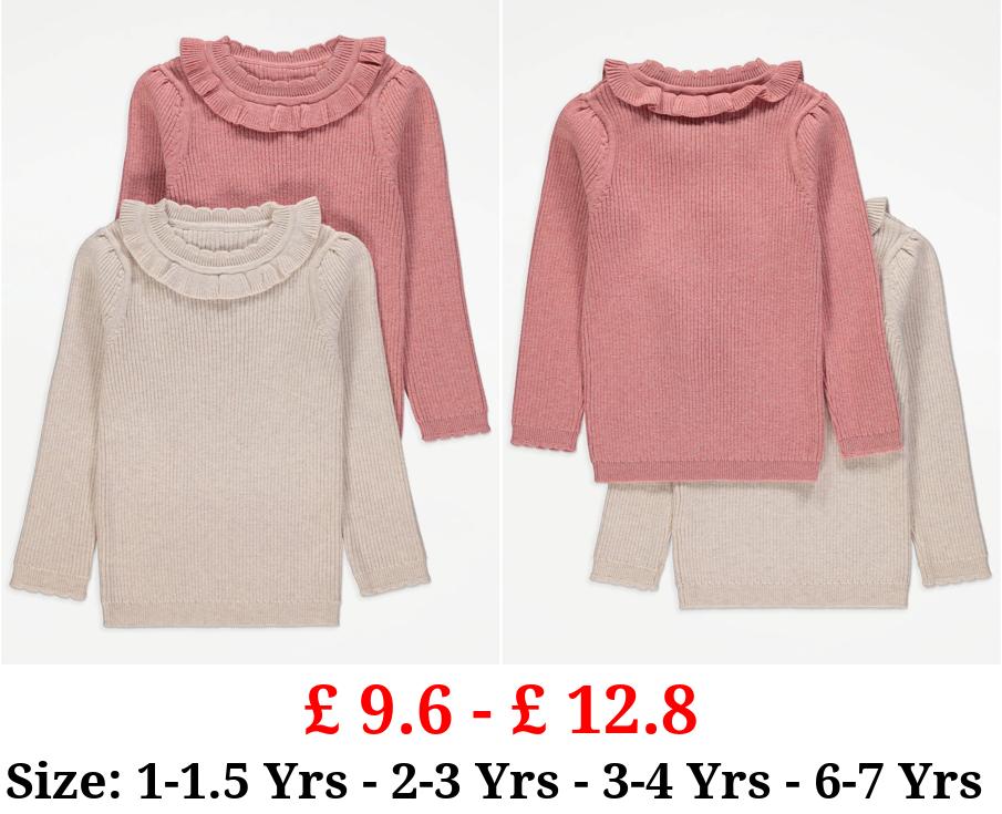 £ 9.6 - £ 12.8 Frilly Ribbed Knitted Jumpers 2 Pack