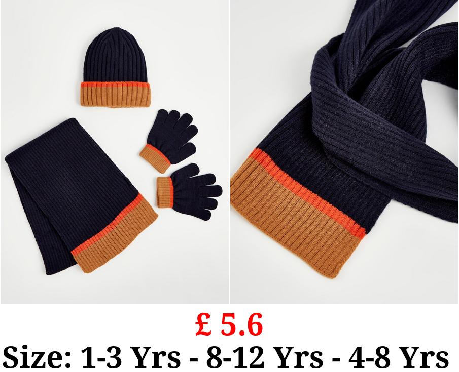 £ 5.6 Navy Knitted Beanie Hat Scarf and Gloves Set