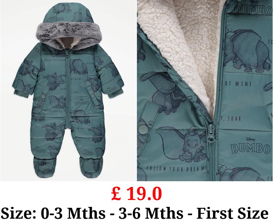 £ 19.0 Disney Dumbo Green Faux Fur Trim Snowsuit