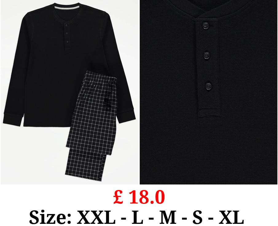 £ 18.0 Black Checked Waffle Long Sleeve Pyjamas Gift Set