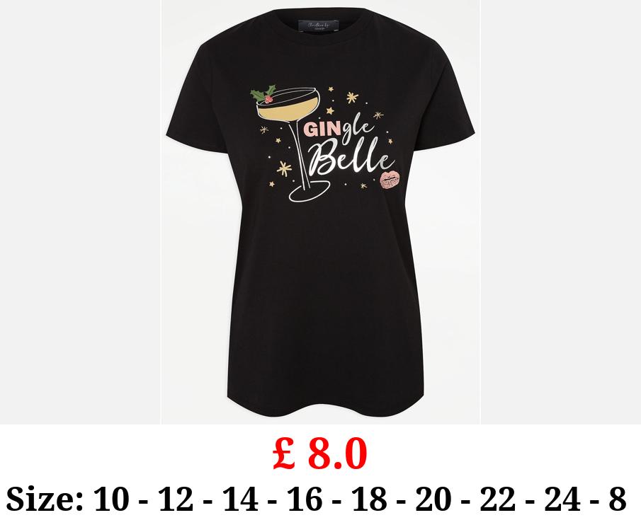 £ 8.0 Black Gingle Belle Slogan T-Shirt