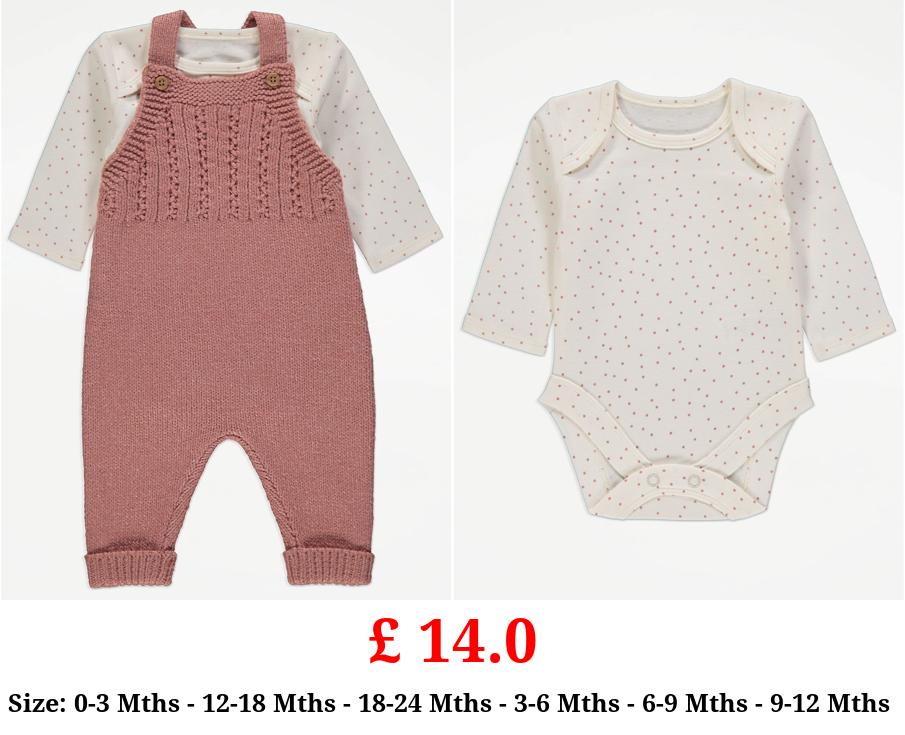 £ 14.0 Pink Knitted Dungaree and Spot Bodysuit Outfit