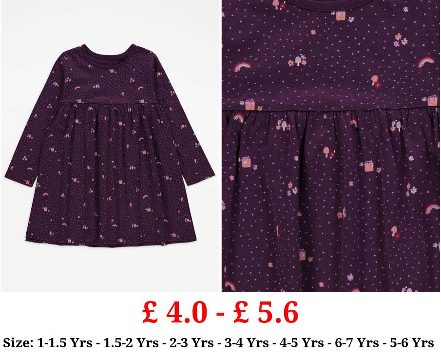 £ 4.0 - £ 5.6 Purple Polka Dot Mushroom Long Sleeve Dress