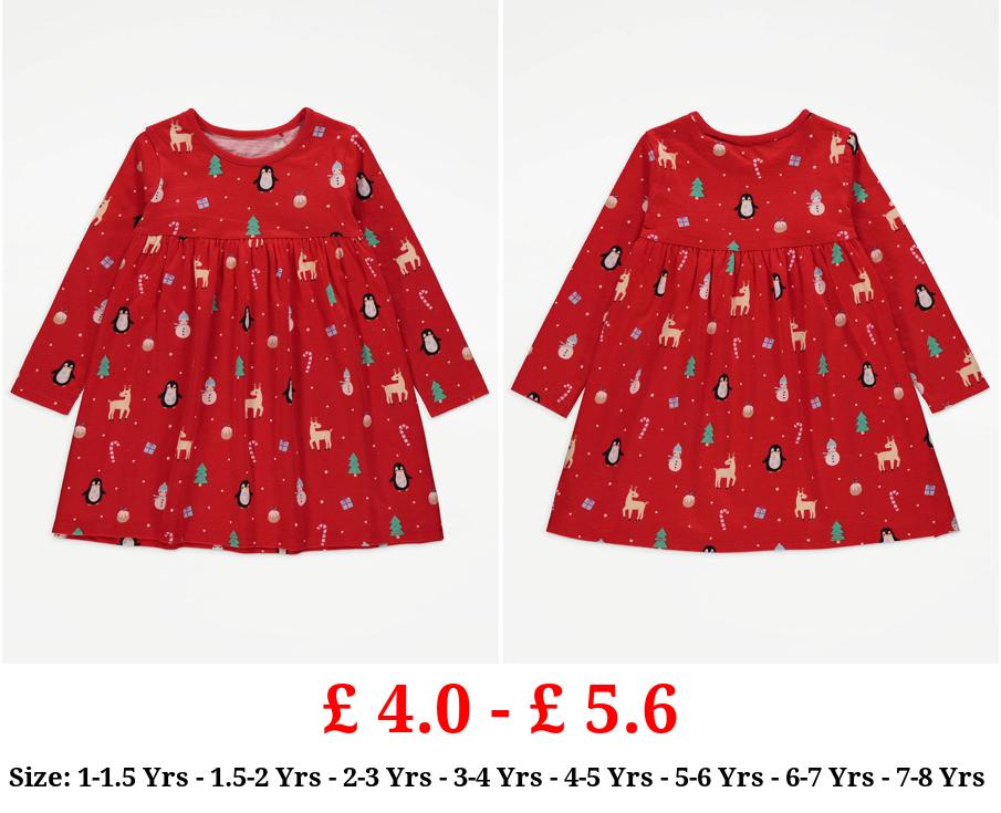 £ 4.0 - £ 5.6 Red Christmas Icons Jersey Dress
