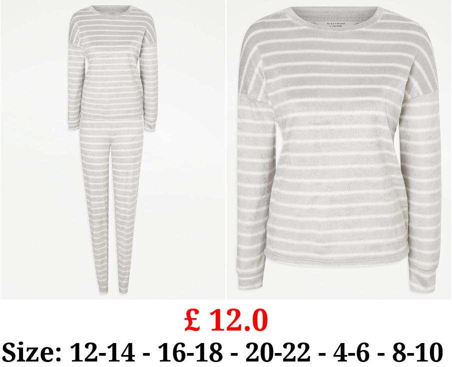 £ 12.0 Grey Striped Fleece Long Sleeve Pyjamas Gift Set