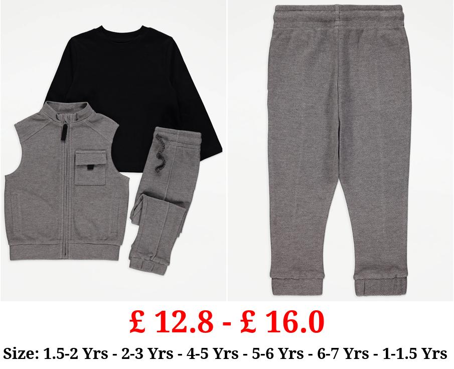 £ 12.8 - £ 16.0 Grey Gilet Joggers and Long Sleeve Top 3 Piece Outfit