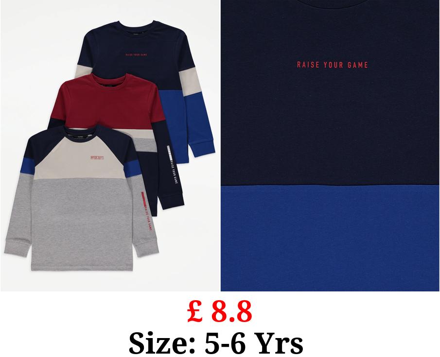 £ 8.8 Raise Your Game Colour Block Long Sleeve Top 3 pack