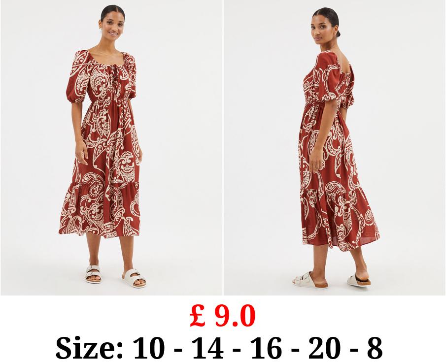 £ 9.0 Rust Paisley Boho Midi Dress