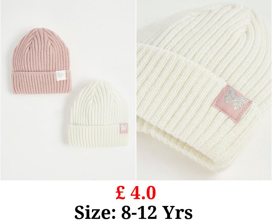 £ 4.0 Knitted Butterfly Beanie Hat 2 Pack