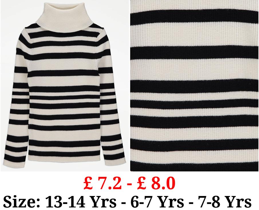 £ 7.2 - £ 8.0 White Striped Roll Neck Jumper