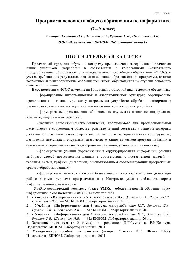 Программа семакина по фгос 53 фото