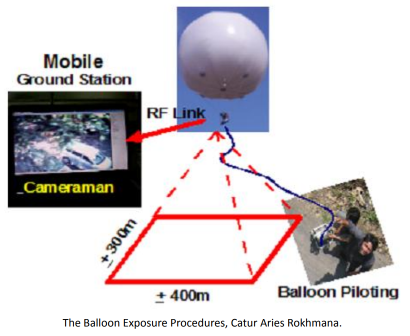 Aerial fotogrametri melibatkan pesawat rc / UAV ( Unmaned Aerial Vehicle) atau drone Kamera dipasang di pesawat terbang dan biasanya mengarah secara vertikal ke tanah.