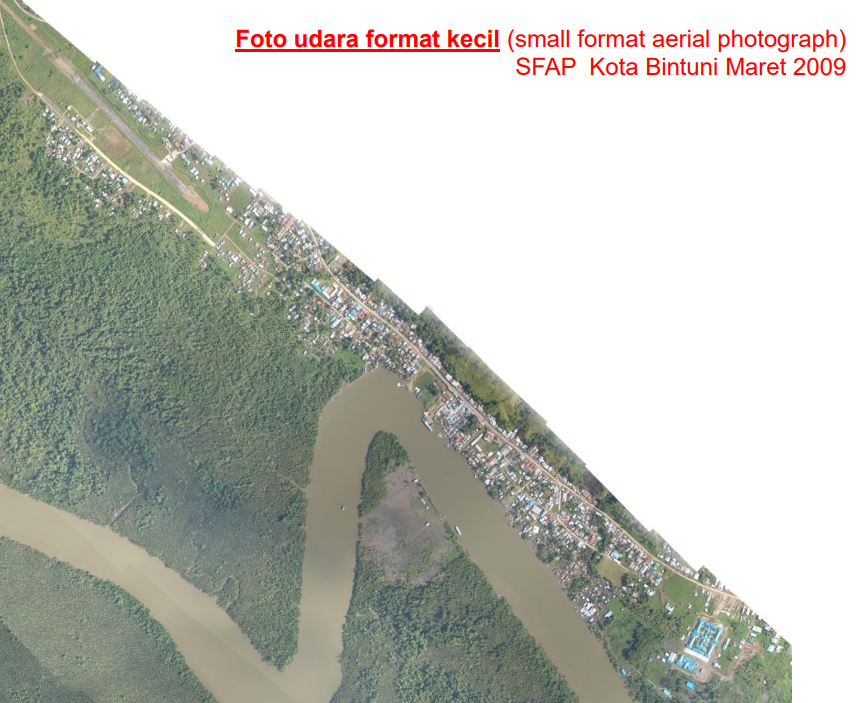 Beberapa foto tanah yang tumpang tindih diambil saat pesawat terbang di sepanjang jalur penerbangan.