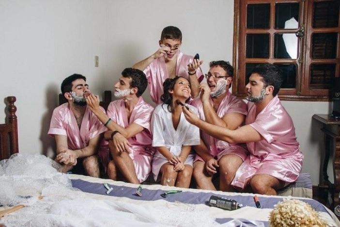 El novio le cubre el rostro con semen