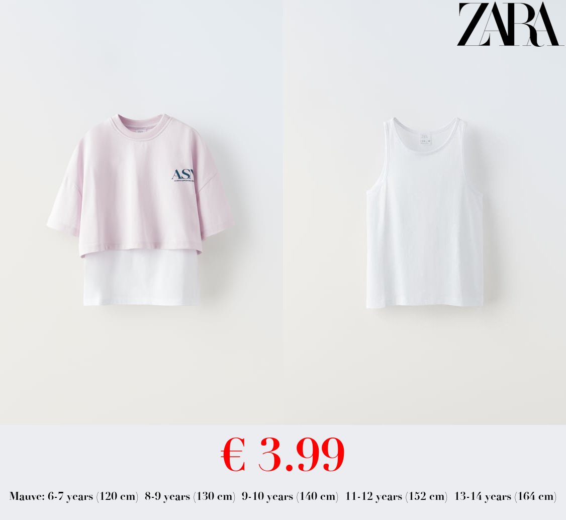 € 2.99 9-14 YEARS/ PACK OF TWO VARSITY TOPS