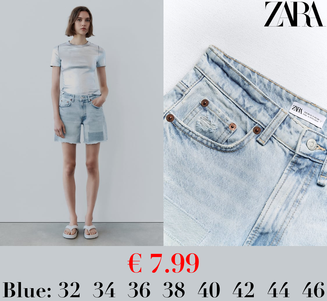 € 7.99 TRF MID-RISE DENIM BERMUDA SHORTS WITH PATCHES