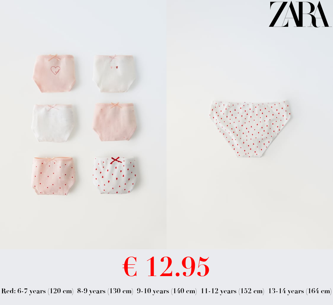 € 12.95 6-14 YEARS/ PACK OF SIX HEART BRIEFS