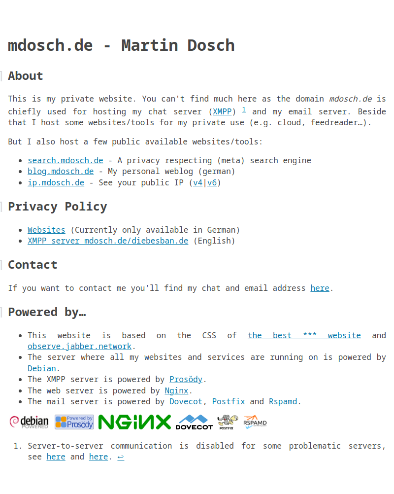 - XMPP server mdosch.de/diebesban.de (English)