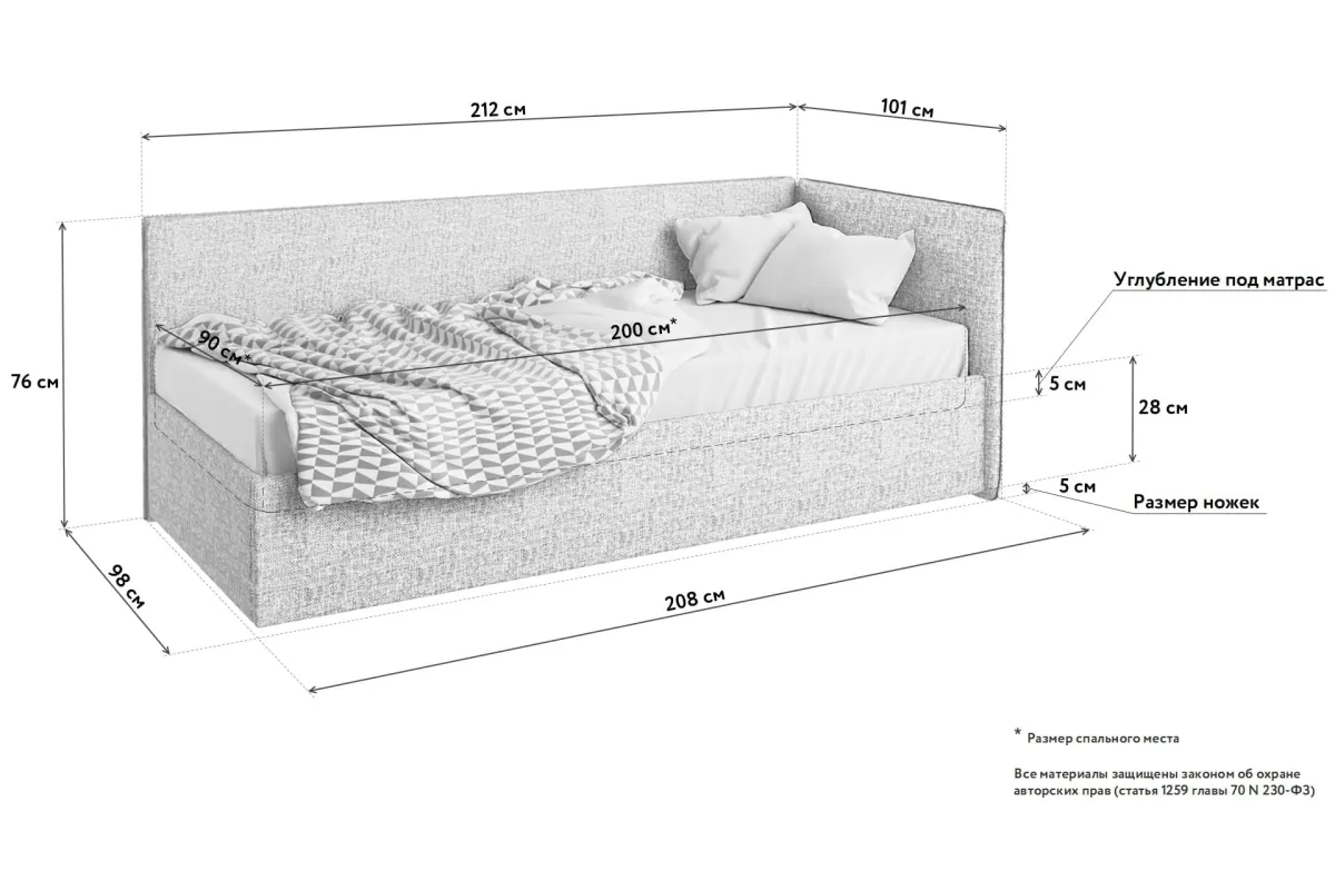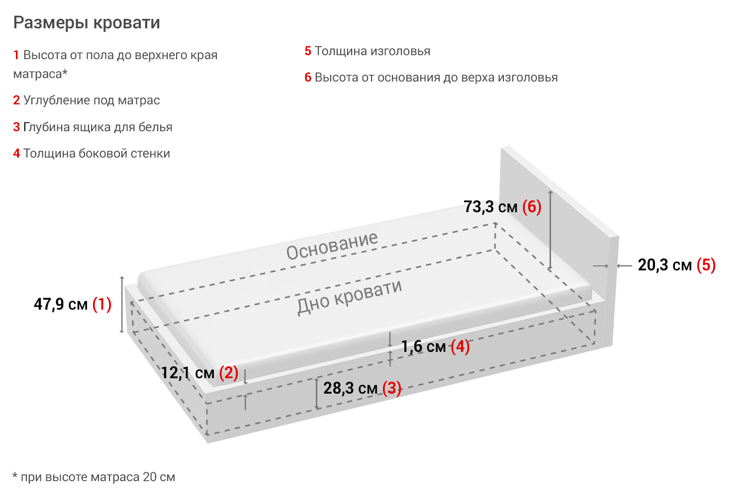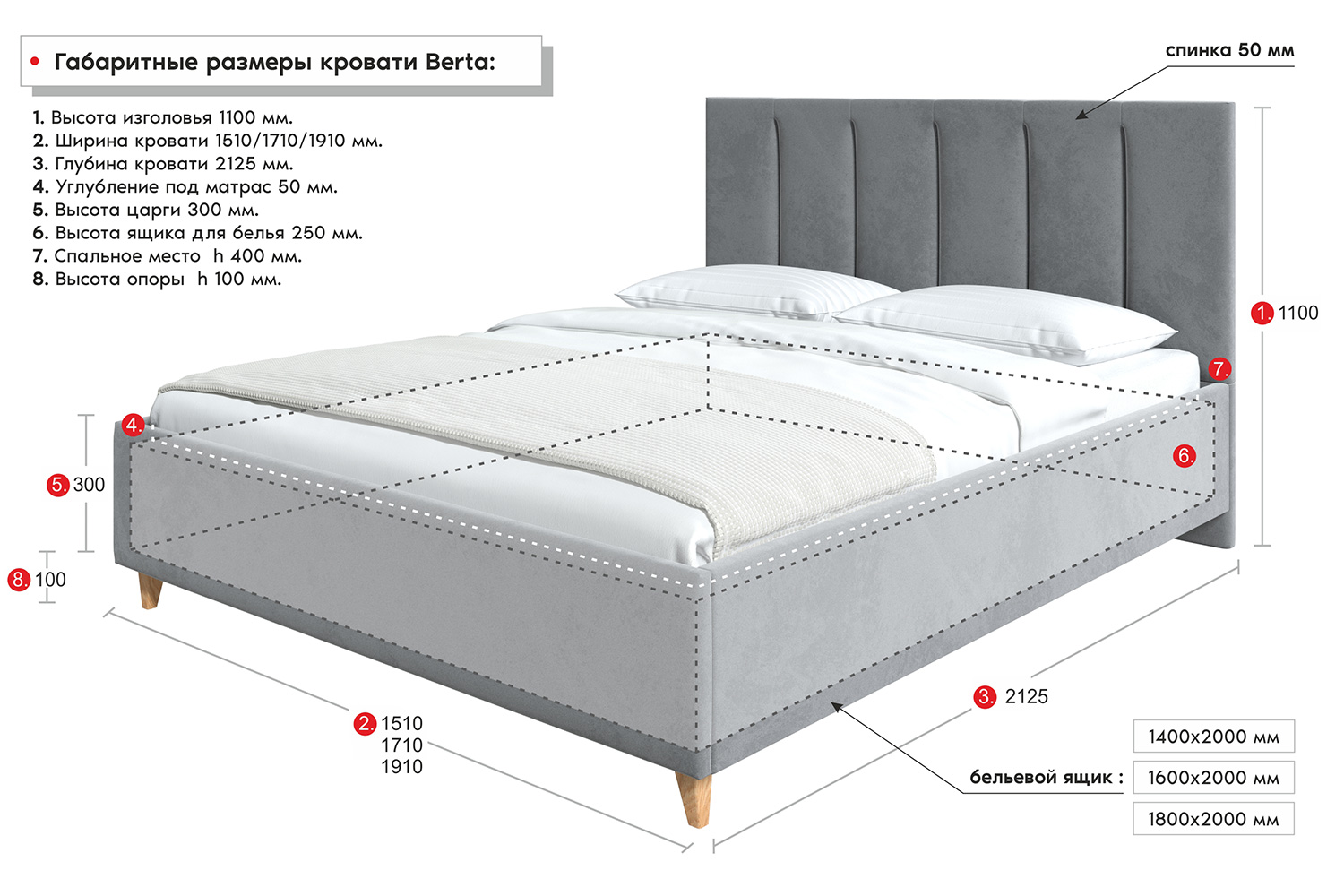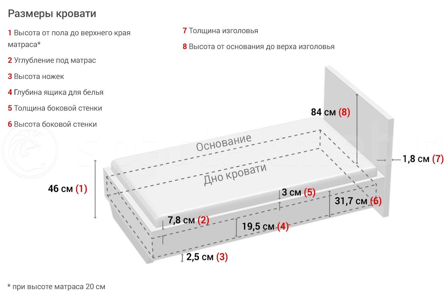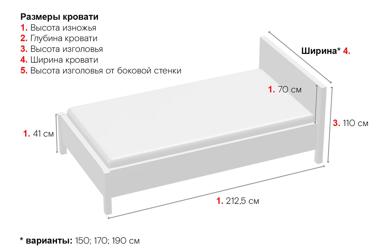 мер ложа кровати