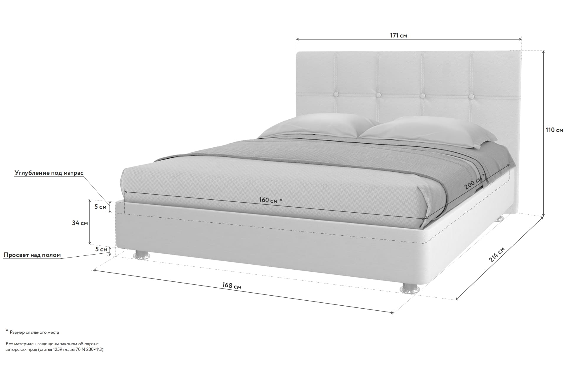 Размер ложа кровати 114 фото