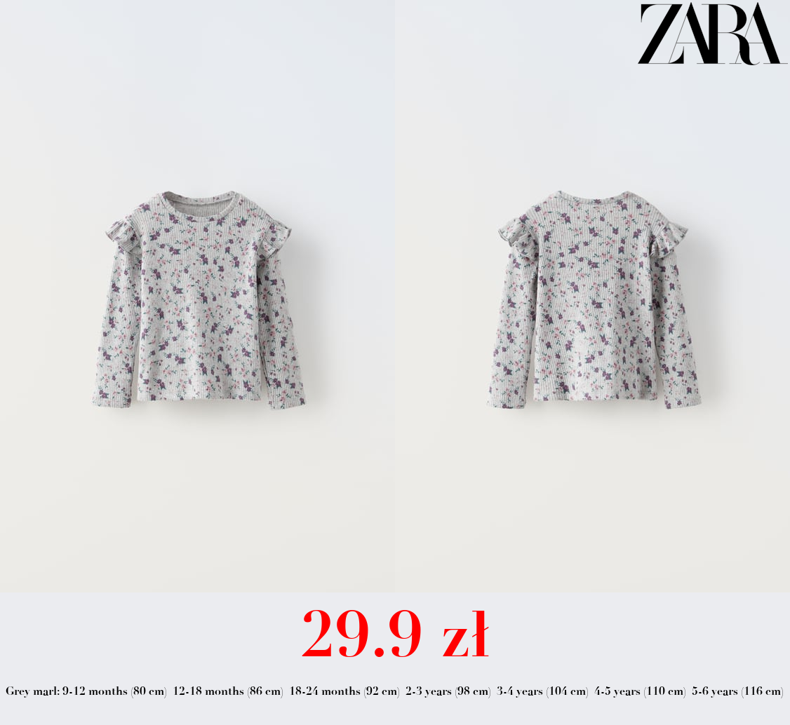 29.9 zł FLORAL RIBBED SOFT T-SHIRT WITH RUFFLES