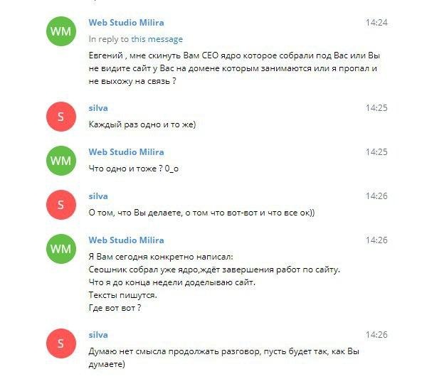 с 13 ноября по 8 января он показывал какие-то кривые шаблоны и кормил завтраками, мне просто надоело, я нашел другого человека, а на этого Георгия забил, ибо работали без фриланханта или каких-либо договоров, хотя там и сумма была смешная. Я с самого начала сомневался, что он что-то сделает, но дурак платит трижды.
