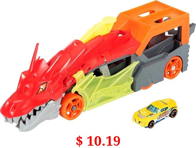 $ 10.19 Hot Wheels Toy Car Track Set City Dragon Launch Transporter & 1:64 Scale Car, Stores up to 5 Vehicles