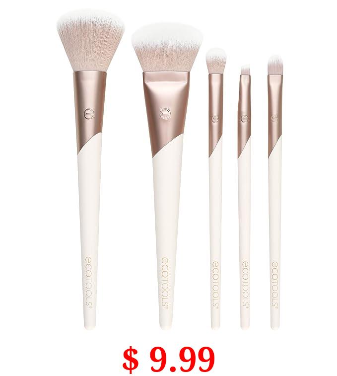 $ 9.99 EcoTools Luxe Natural Elegance Professional Face Makeup & Foundation Brush Set, Premium Brush Kit For Face, Cheek, & Eye Makeup, Synthetic Makeup Brushes, Vegan & Cruelty-Free, 5 Piece Set