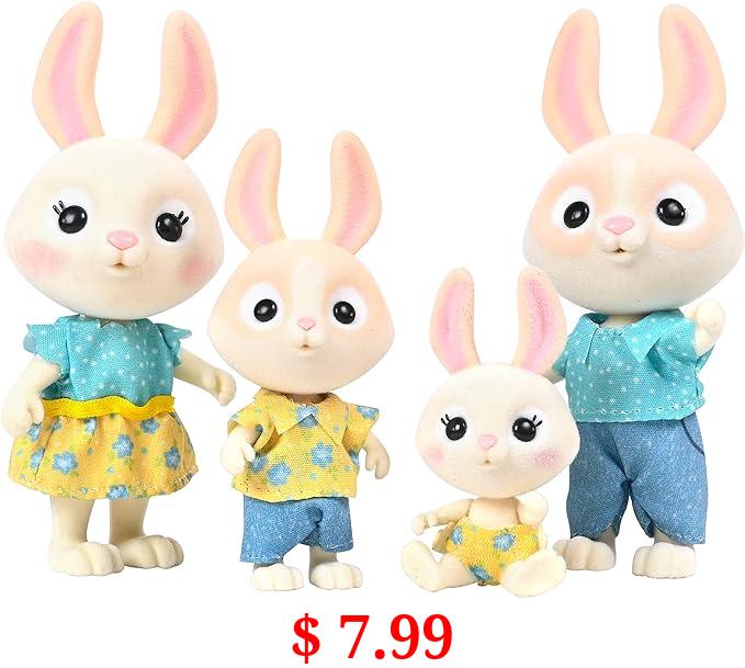 $ 7.99 Honey Bee Acres The McScampers Rabbit Family, 4 Mini Flocked Doll Play Figures, Bunny Collectibles, Pretend Play Toys for Kids, Valentines, Easter Basket, Birthday Gift for Girls 3+