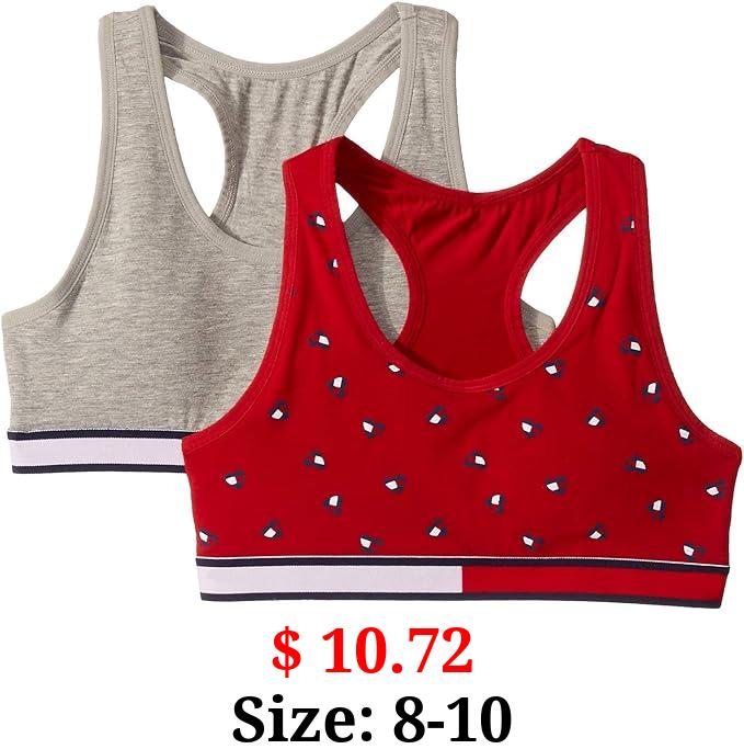 $ 10.72 Size: 8-10 Tommy Hilfiger Girls' Crop Sports Bra (Pack of 2), Racerback Straps & Soft Elastic Waistband, Cotton & Spandex
