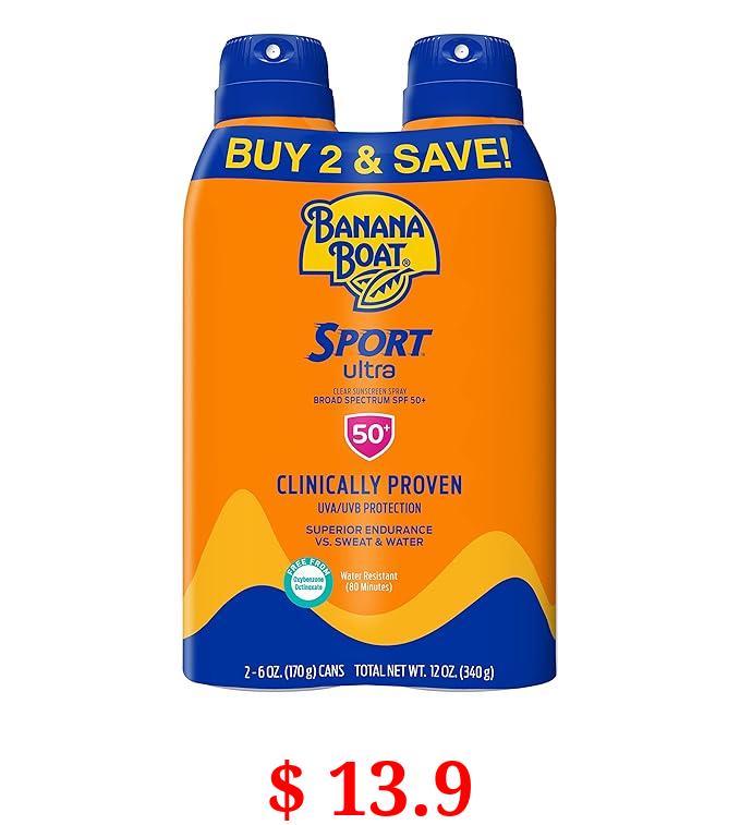 $ 13.9 Banana Boat Ultra Sport Reef Friendly Sunscreen Spray, Broad Spectrum SPF 50, 6 Oz (Pack of 2)