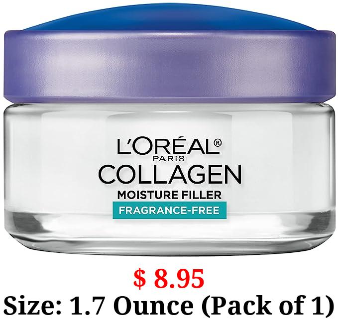 $ 8.95 Size: 1.7 Ounce (Pack of 1) L'Oreal Paris Collagen Daily Face Moisturizer, Reduce Wrinkles, Face Cream, Fragrance Free 1.7 oz