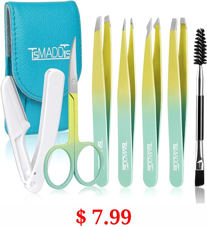 $ 7.99 Eyebrow Tweezer Set, TsMADDTs 7 Pcs Tweezers Set for Women, Precision Tweezer for Eyebrows with Curved Scissors and Eyebrow Razor for Ingrown Hair,Yellow&Green