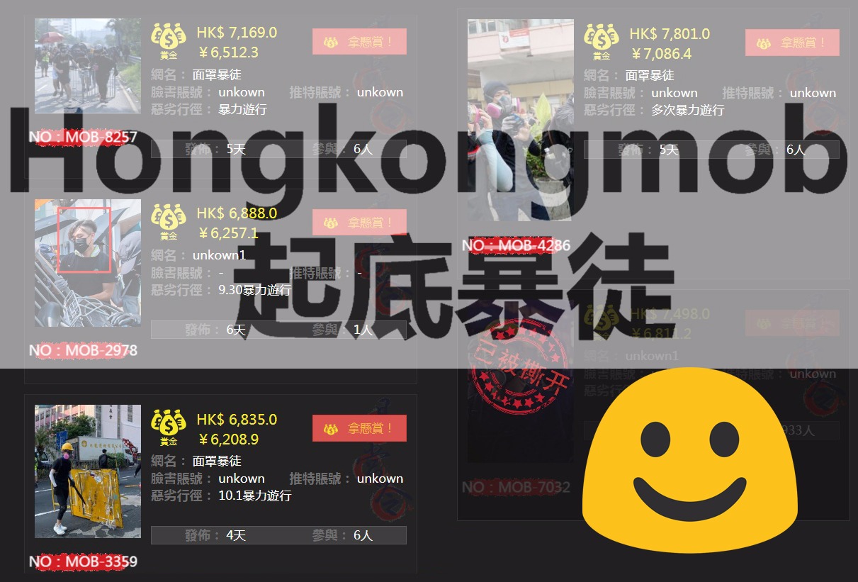 hongkongmob.com係一個起底面具暴徒嘅web,上邊有懸賞有爆料,仲有大量暴徒暴行嘅證據。