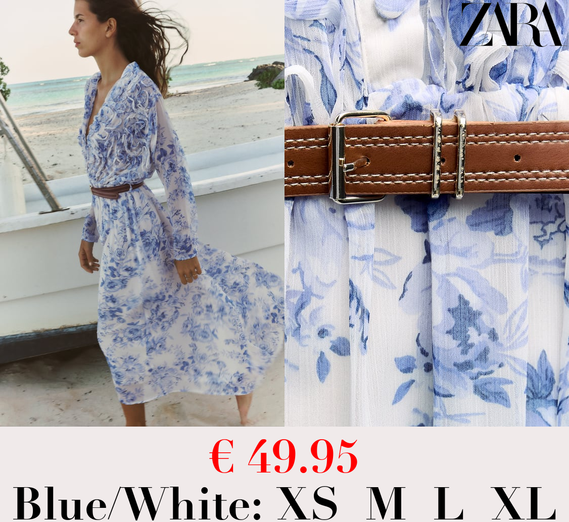 € 49.95 BELTED DRESS WITH PRINT AND RUFFLES