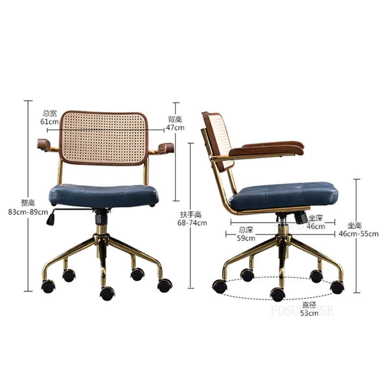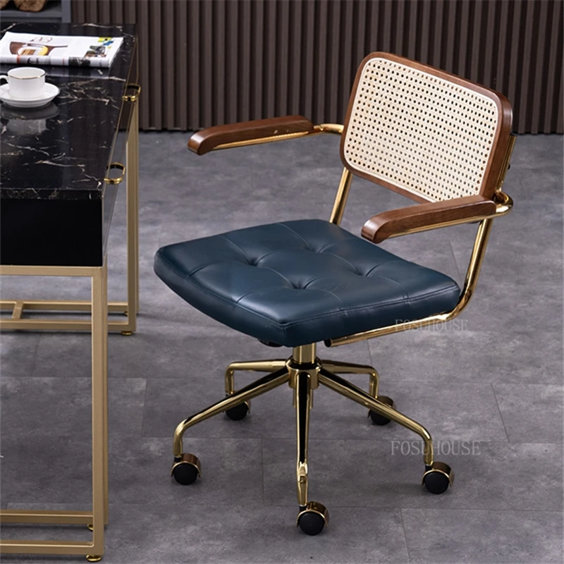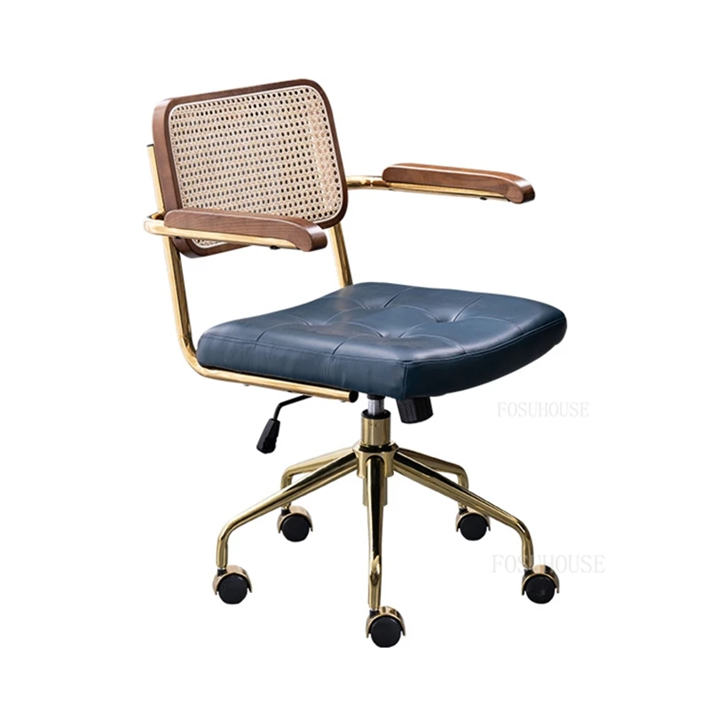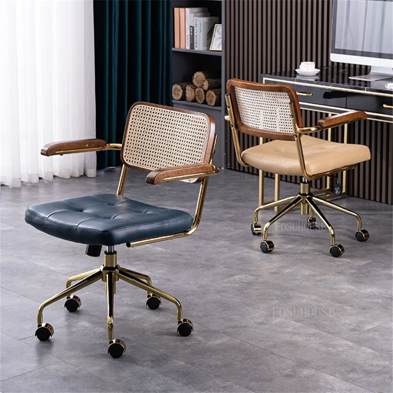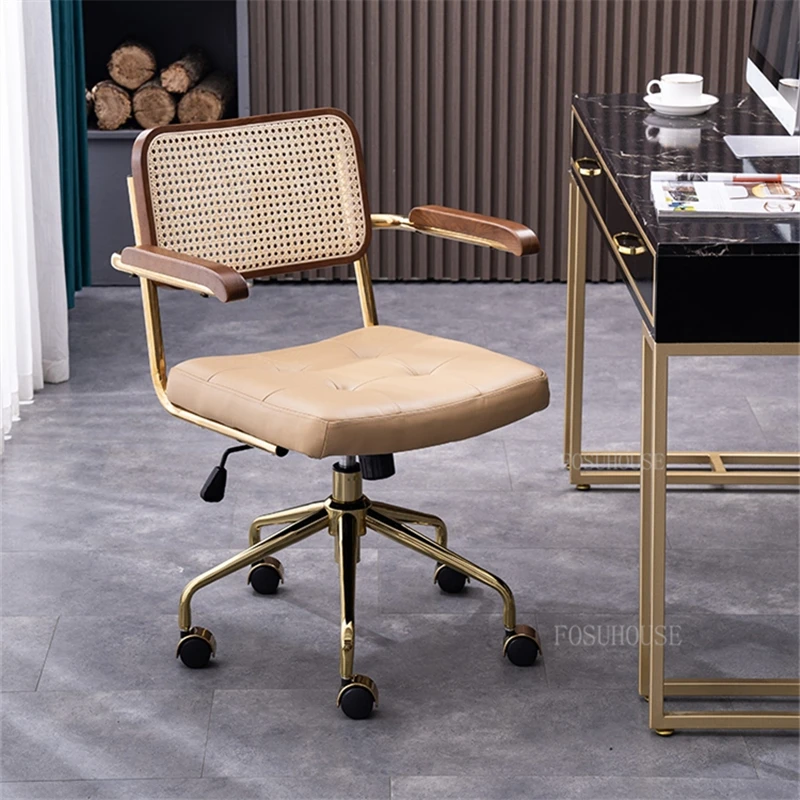 modern Simple Office Chair Home Comfortable Computer Chair Office Chairs for Bedroom Rattan backrest Chair Retro Swivel Chair - Купить с бесплатной доставкой