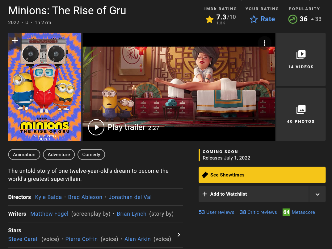 Minions: The Rise of Gru (2022) BluRay 720p/1080p