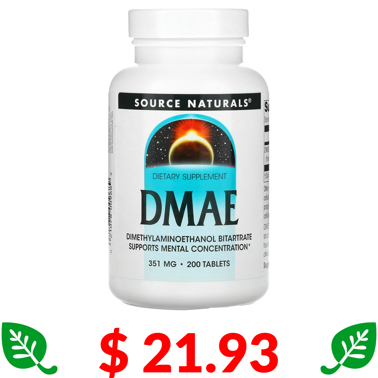 $ 21.93 Source Naturals, ДМАЕ, 351 мг, 200 таблеток