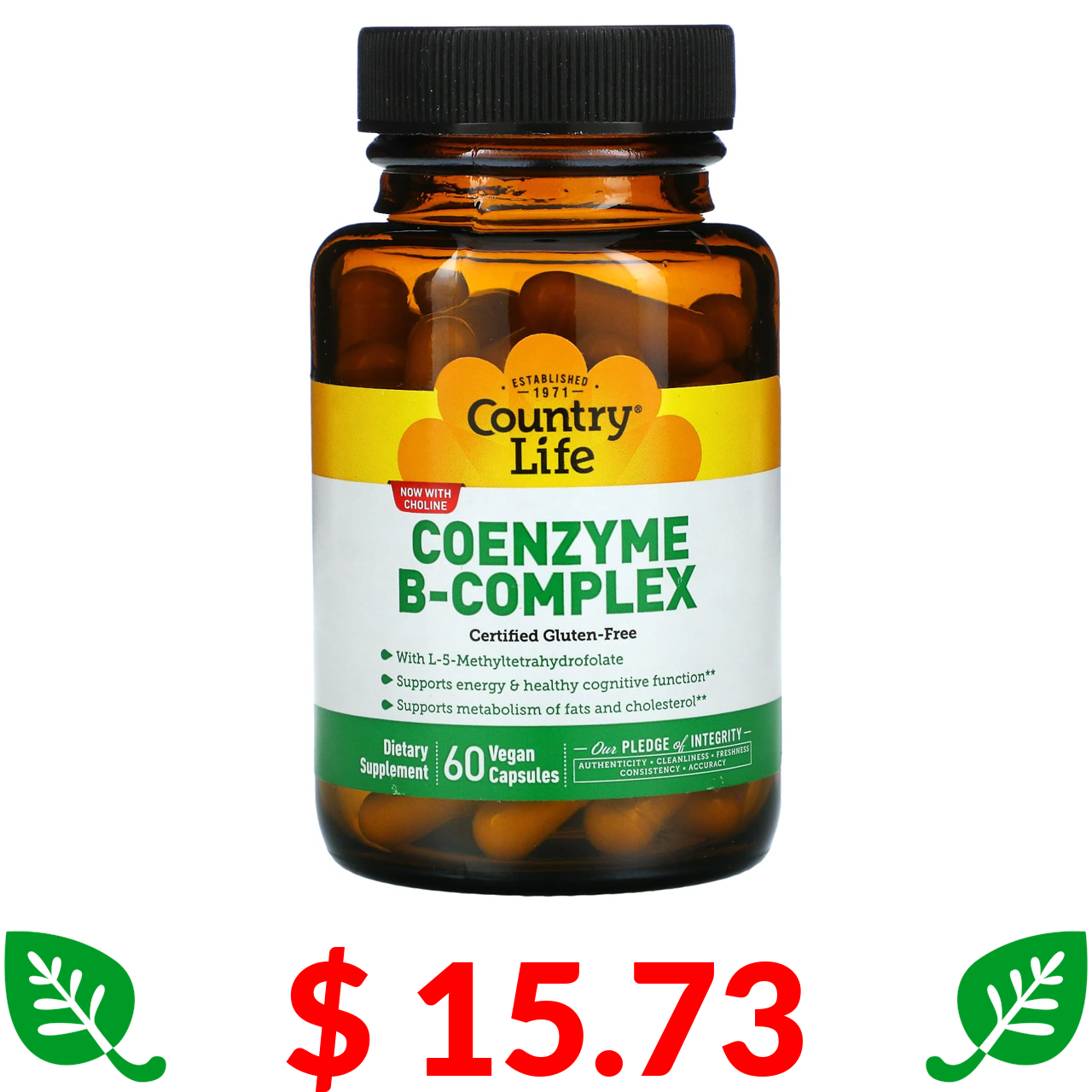 $ 15.73 Country Life, комплекс коферментних вітамінів групи B, 60 веганських капсул