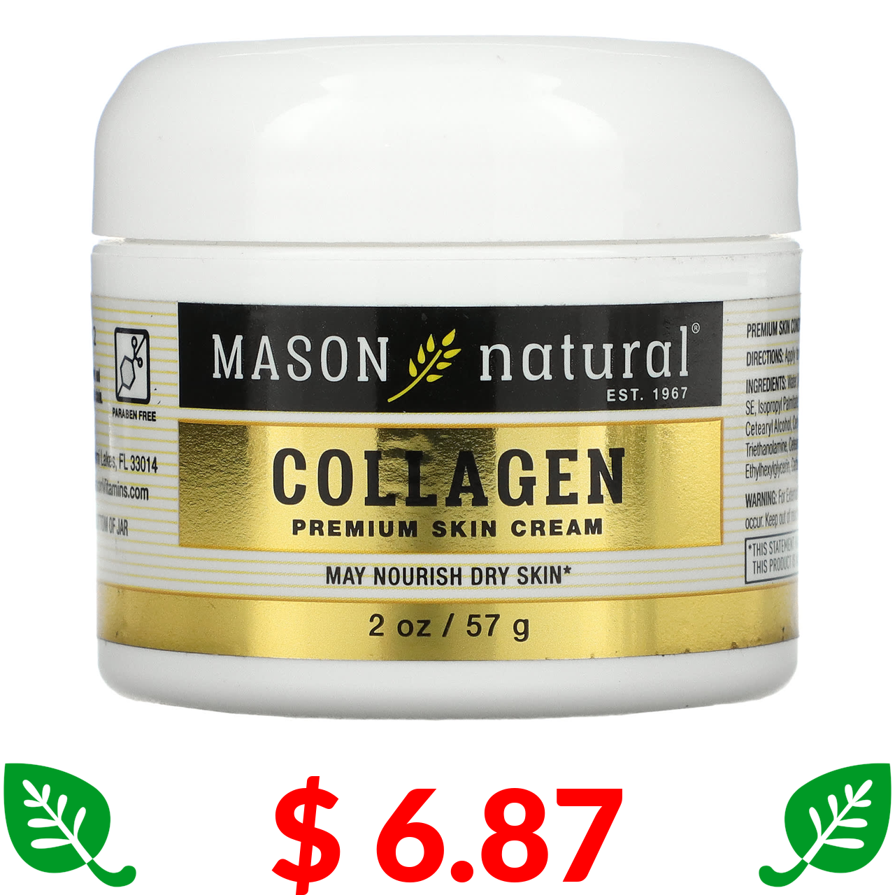 $ 6.87 Mason Natural, крем для шкіри з колагеном преміальної якості, 57 г (2 унції)