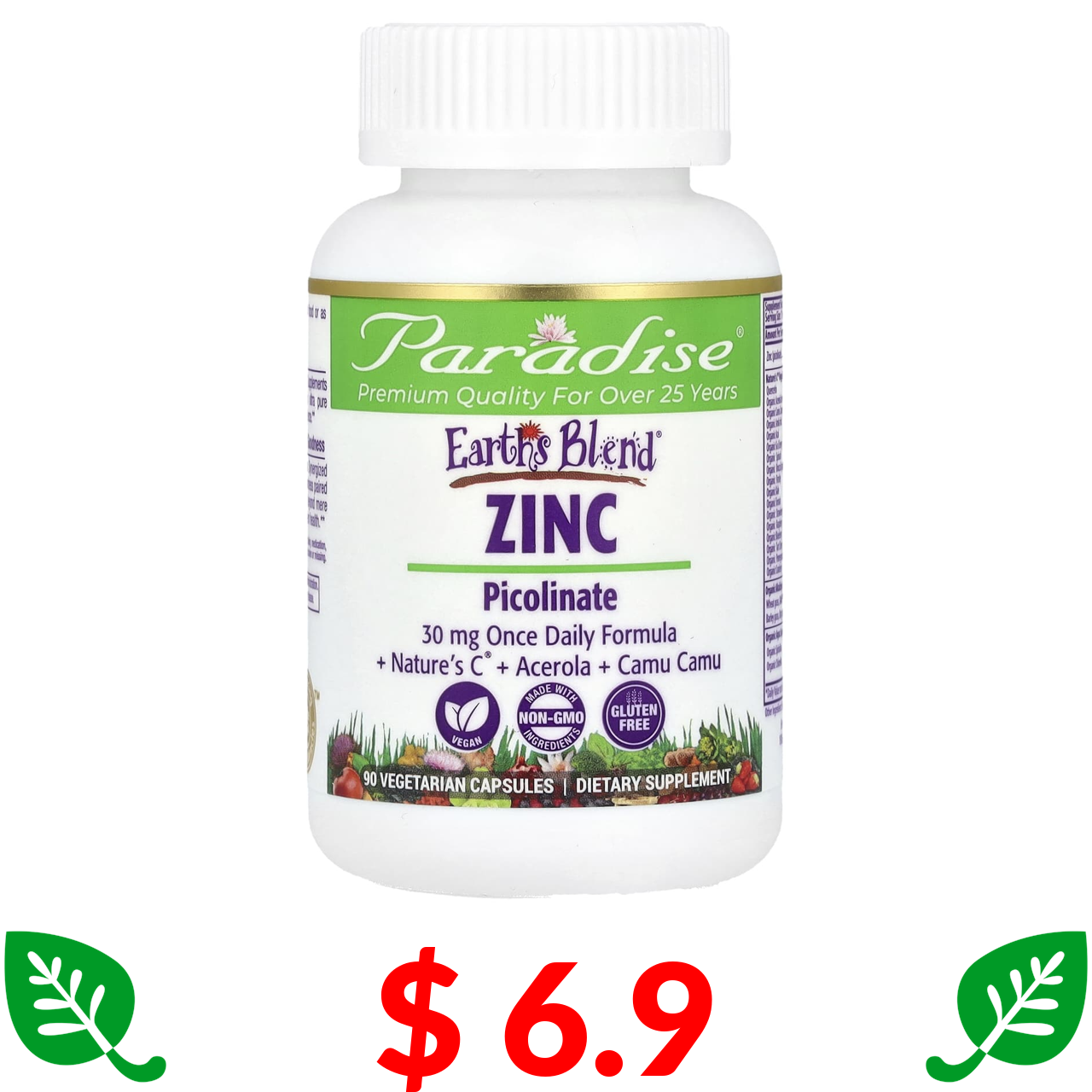 $ 6.9 Paradise Herbs, Earth's Blend, цинк, піколінат, 90 вегетаріанських капсул