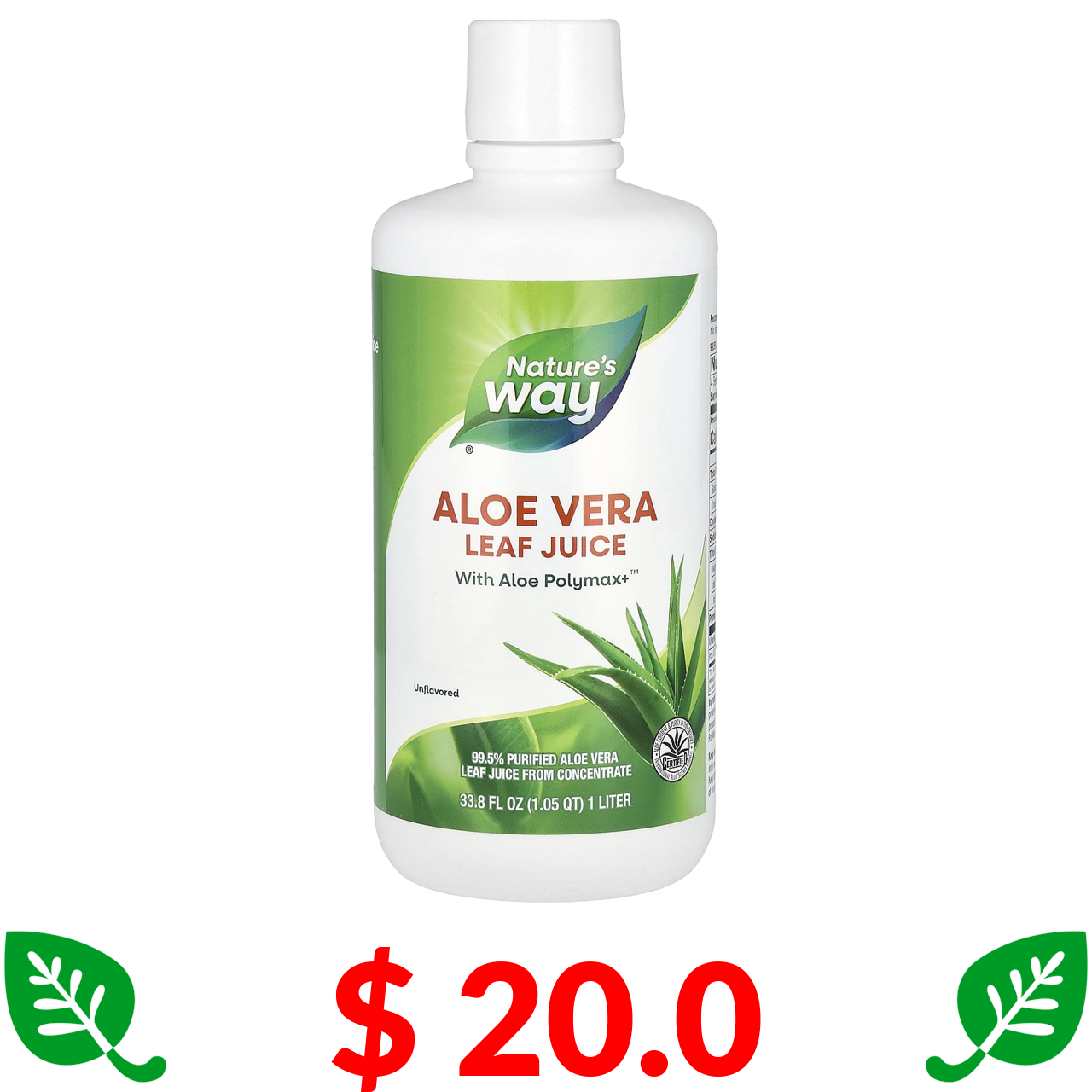 $ 20.0 Nature's Way, сік із листя алое вера, з нейтральним смаком, 1 л (33,8 рідк. унції)