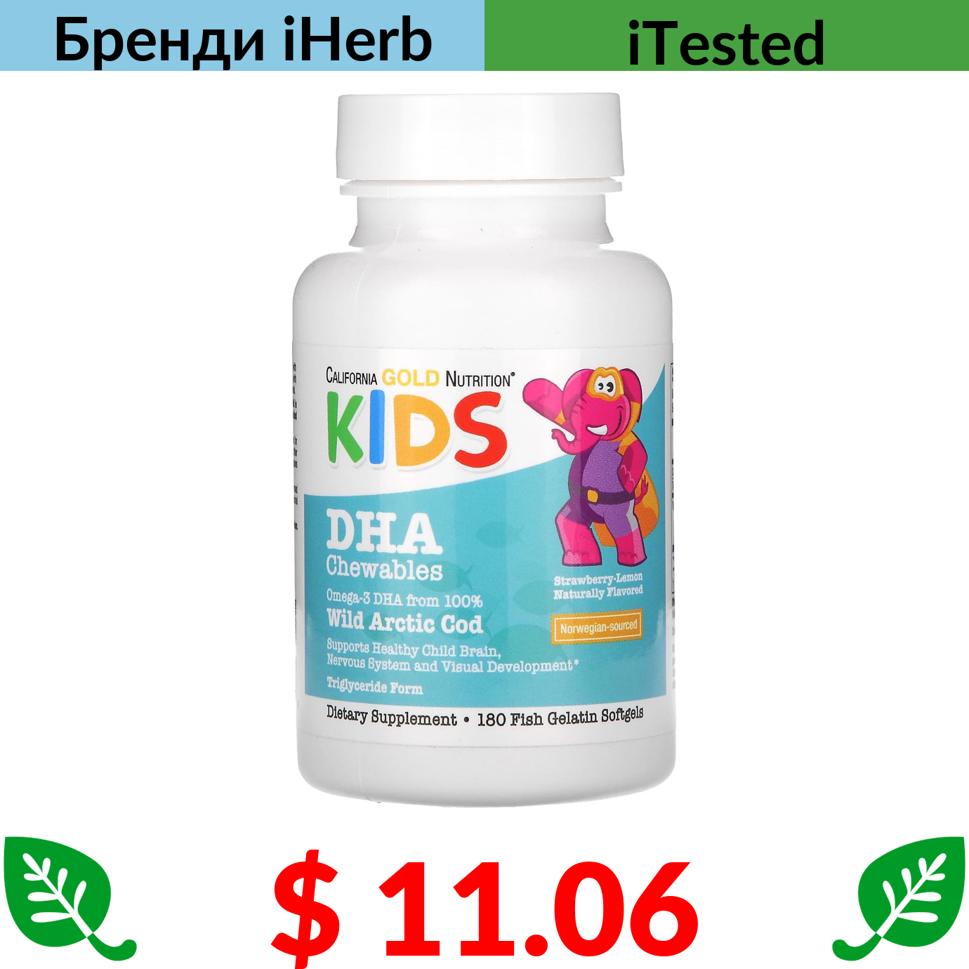 $ 19.42 California Gold Nutrition, вітаміни D3 й K2, 180 рослинних капсул