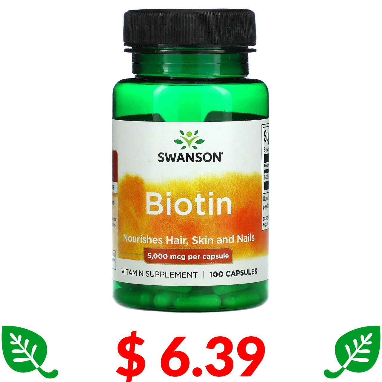 $ 6.39 Swanson, біотин, 5000 мкг, 100 капсул