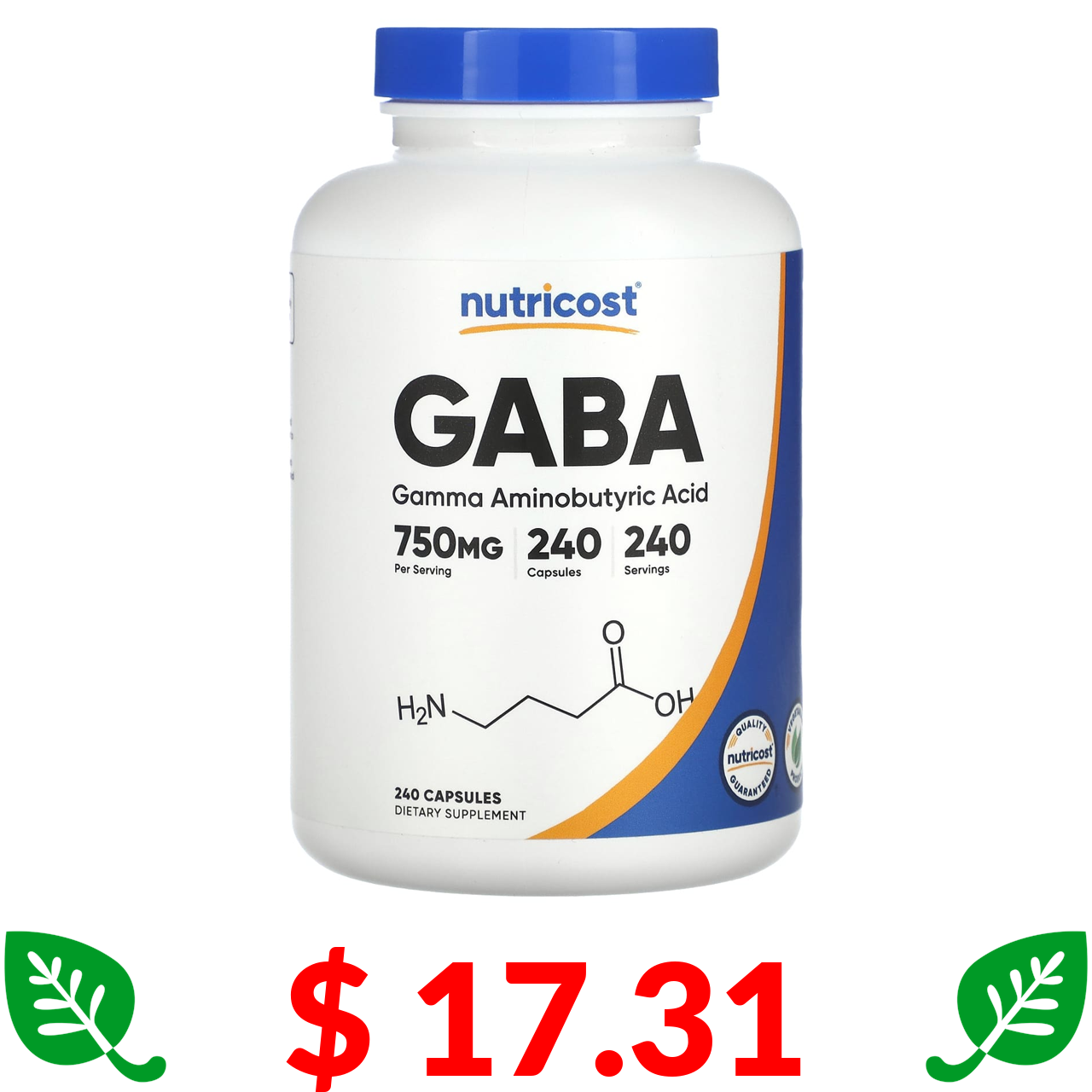 $ 17.31 Nutricost, ГАМК, 750 мг, 240 капсул