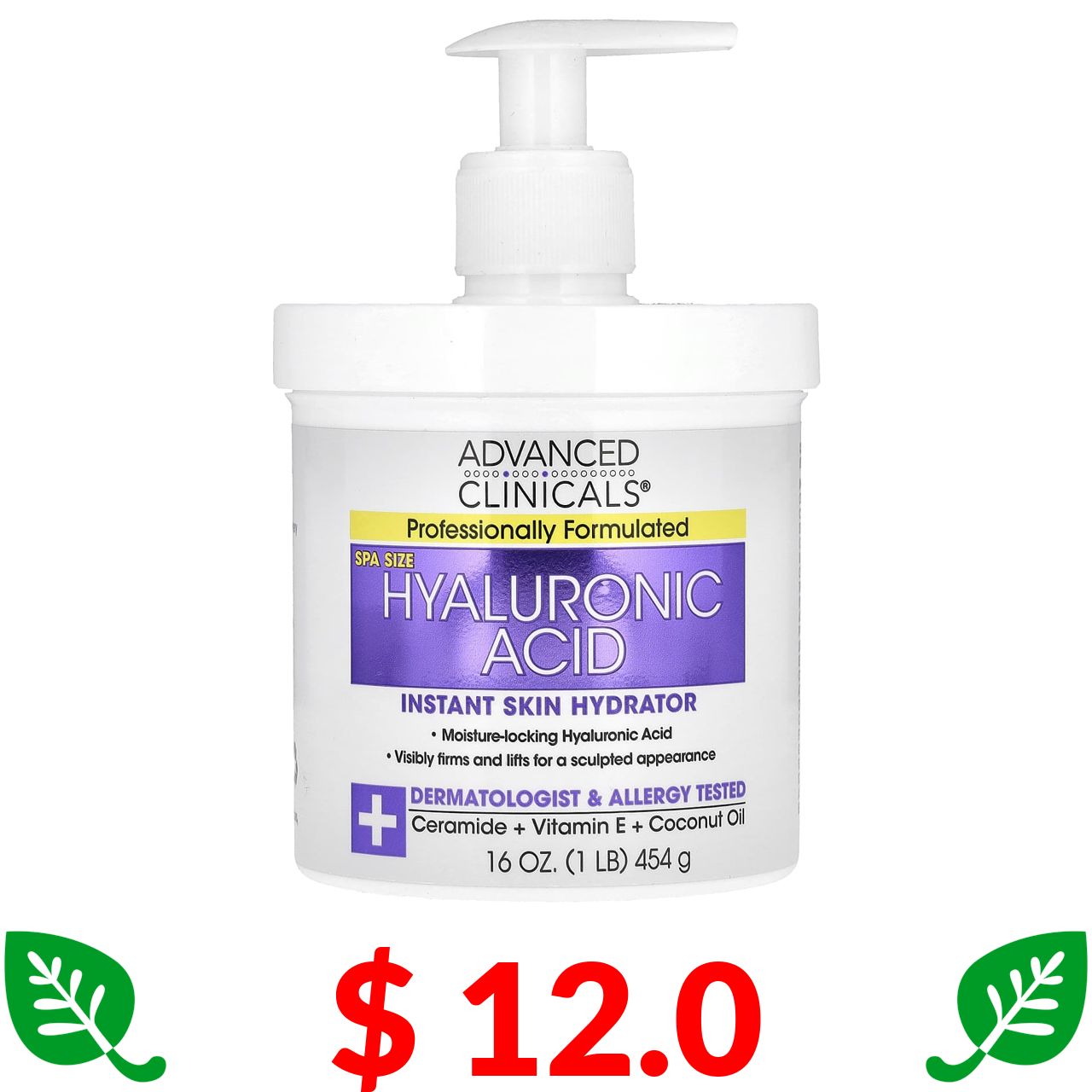 $ 12.0 Advanced Clinicals, гіалуронова кислота, миттєве зволоження шкіри, 454 г (1 фунт / 16 унцій)